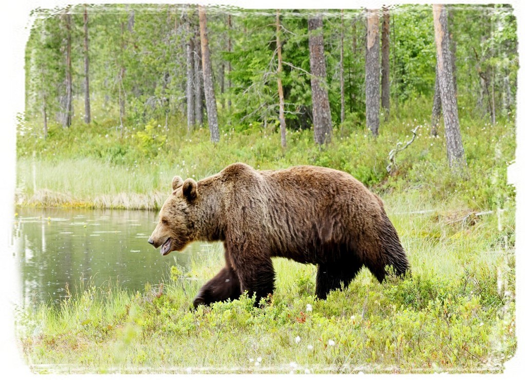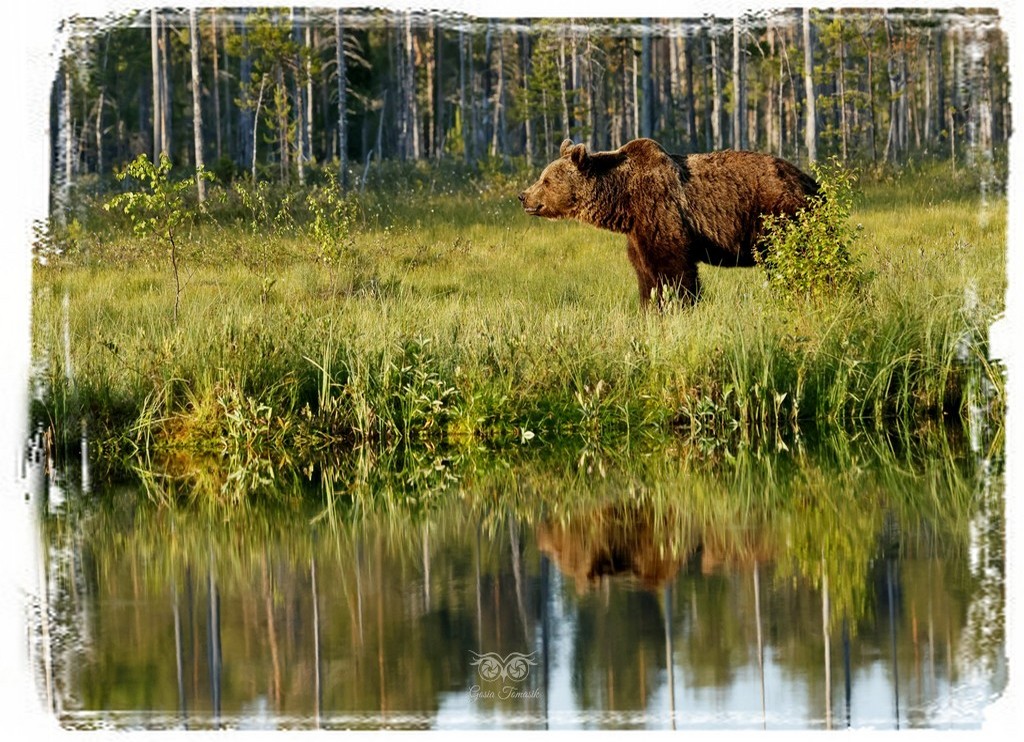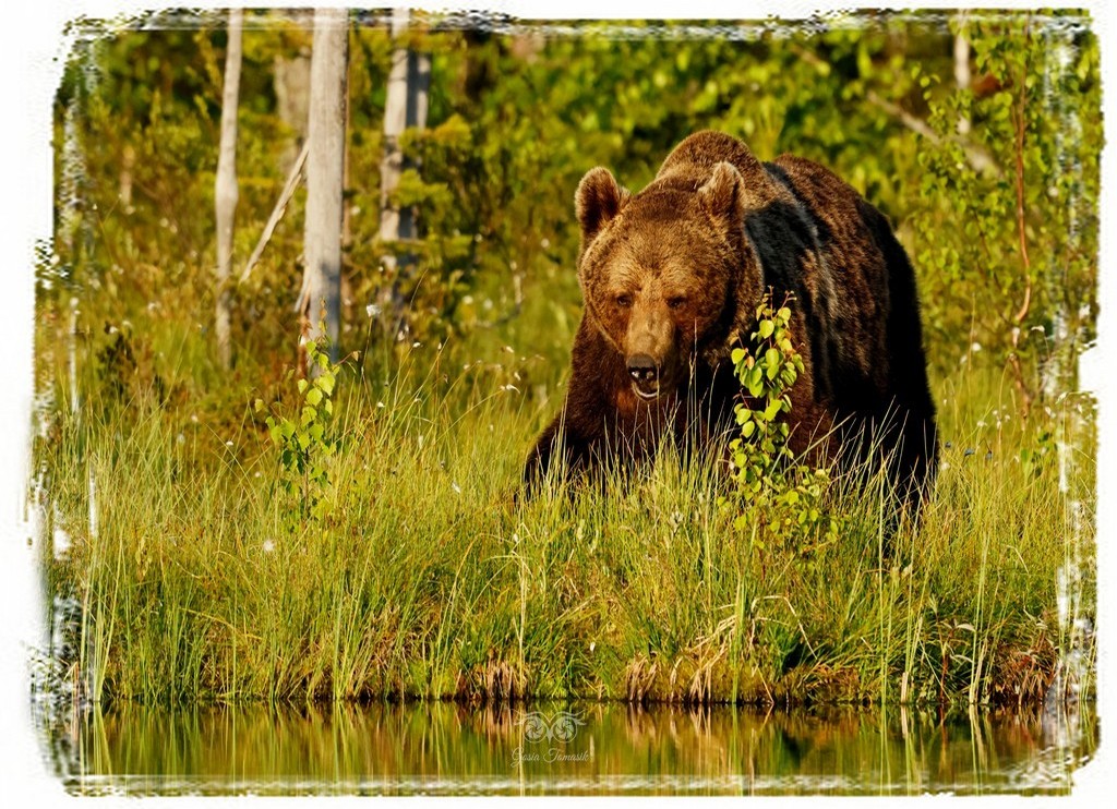 Kiedy po północy przychodzi niedźwiedź aby obejść swoje terytorium, widzieć jak dostojnie idzie pośród mgieł wzdłuż jeziorka i kołyszących się wełnianek.
