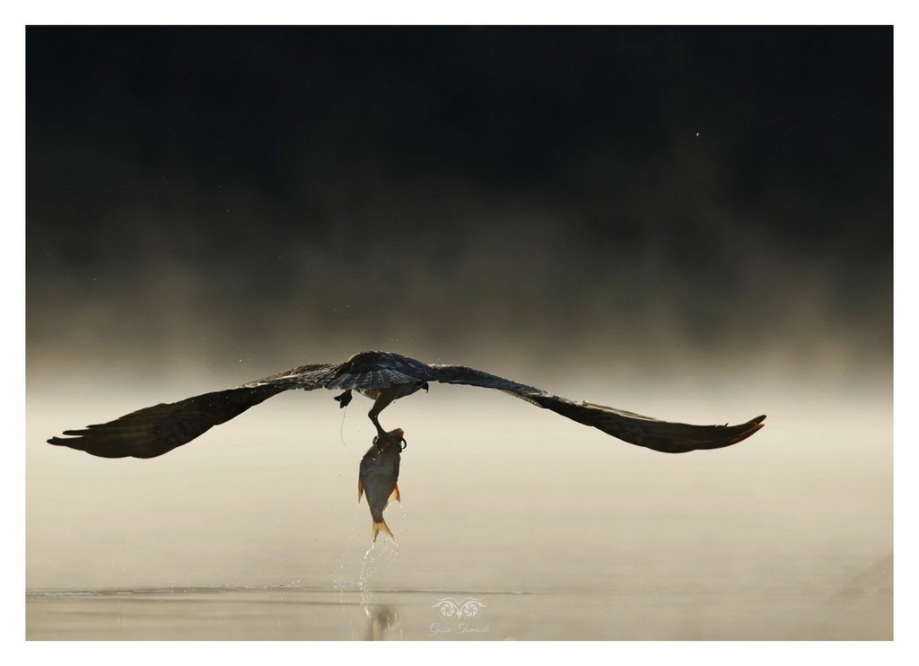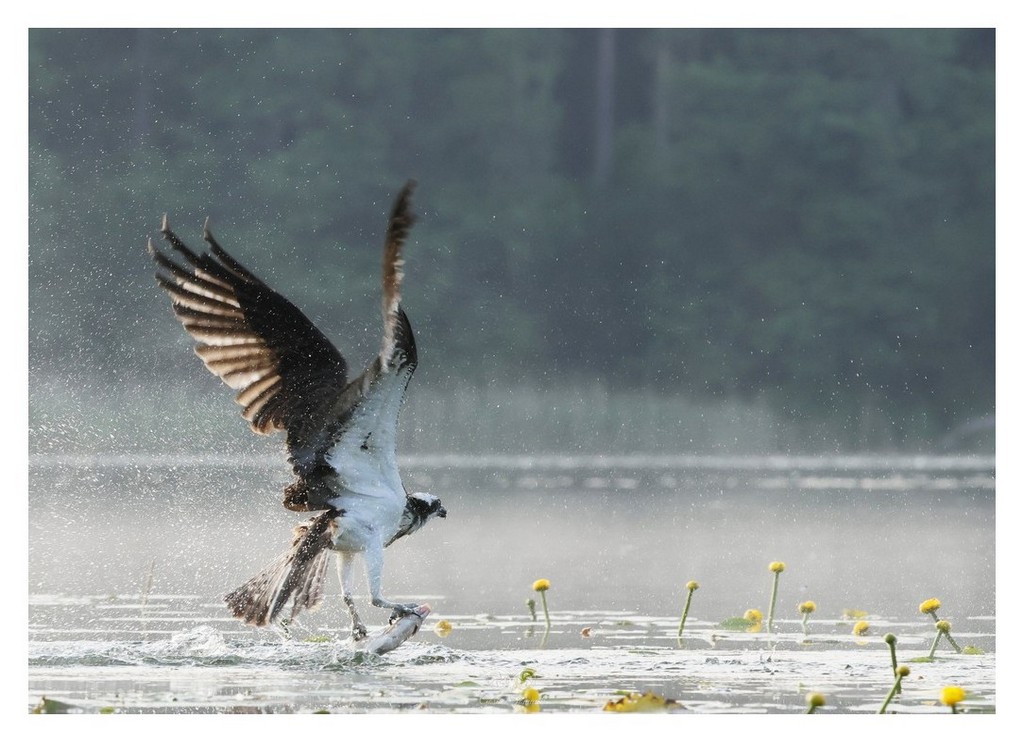 Czy to deszcz, czy to słońce, rybołów jest w akcji, a oglądanie go w tym momencie to czysta magia. W zależności na jakiej głębokości jest rybka, tak dużo czasu zajmuje mu obliczenie z jaką prędkością i jak głęboko zanurkować, będzie to albo jedno albo kilka „kółeczek”, a z matematyki miał same piątki :).
