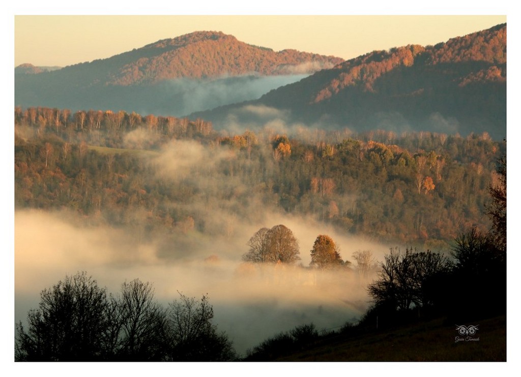 Mglisty poranek z widokiem na Krywe w Bieszczadach