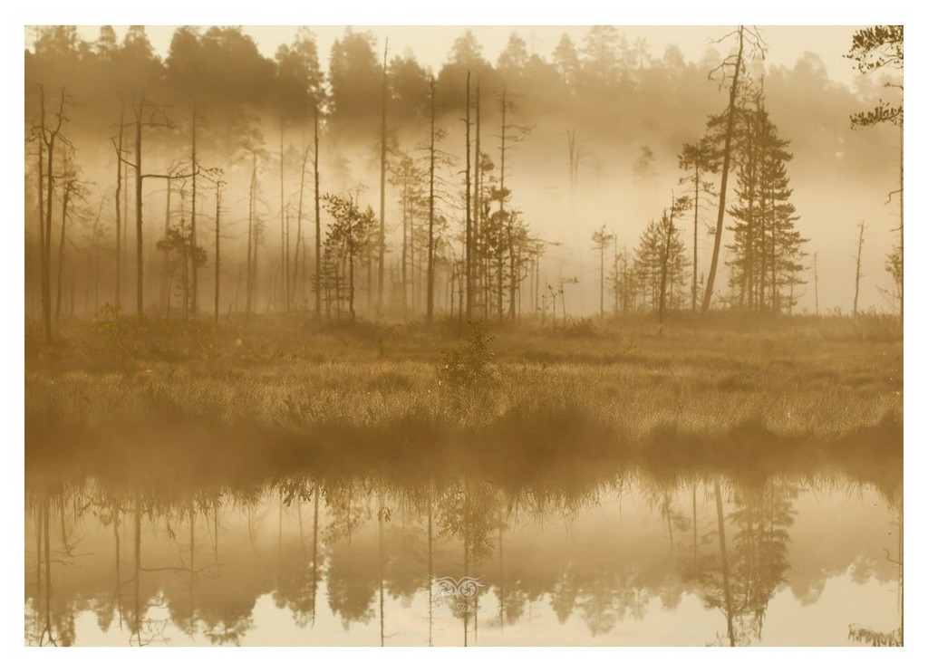 Fińska tajga o wschodzie słońca